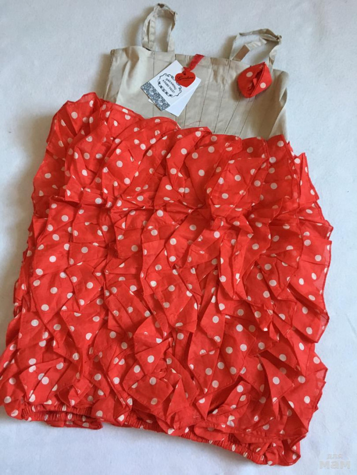 Яркий сарафан на девочку, внутри подкладочка, лямочки регулируются, по спине-резинка(на любую ширину хорошо садится), маркировка-152, маломерит, с роста 140 хорошо!!!