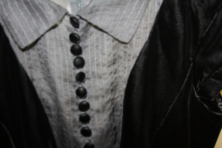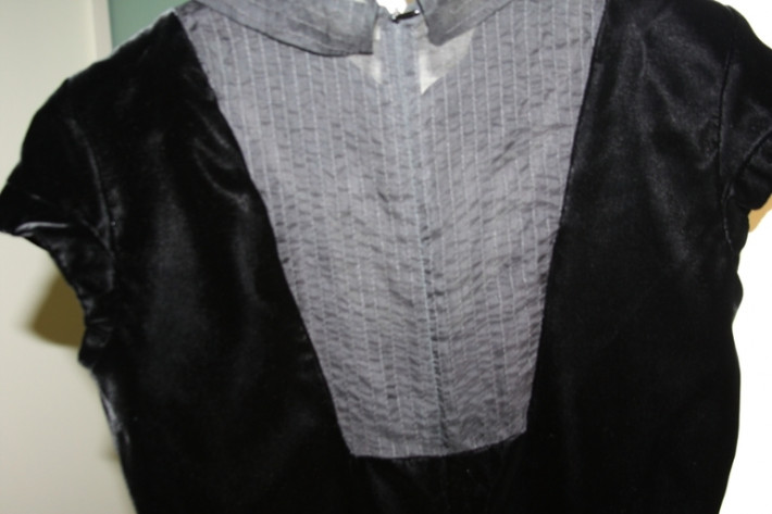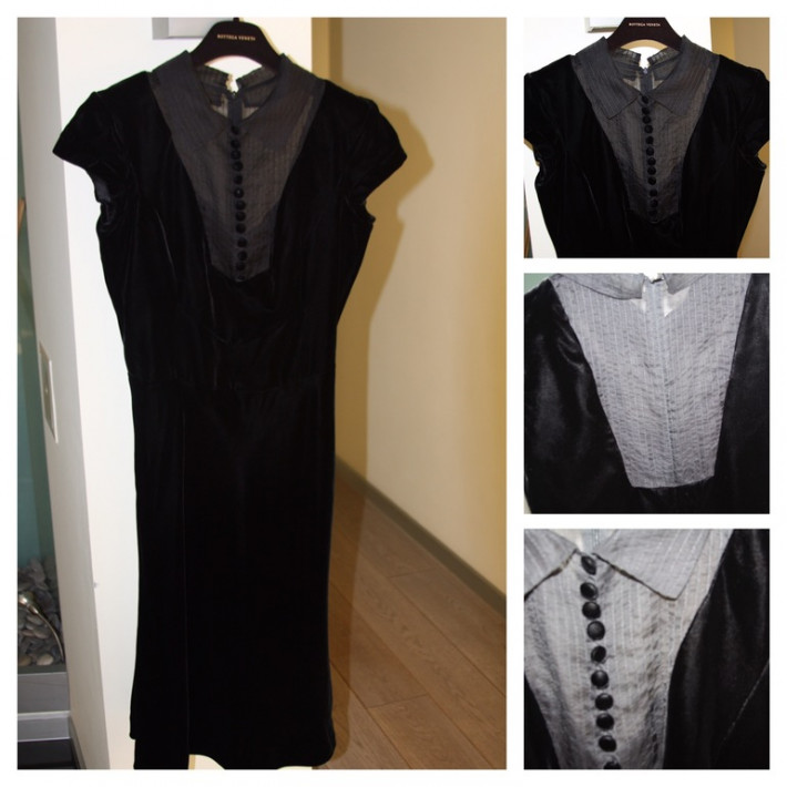 17. L"WREN SCOTT, Американский дорогой дизайнер). Покупала во Временах года).Черный бархат с полупрозрачной шифоновой вставкой,пугавицы бархатные. Размер 44.(маломерит) очень! На размер XS! 25 тыс