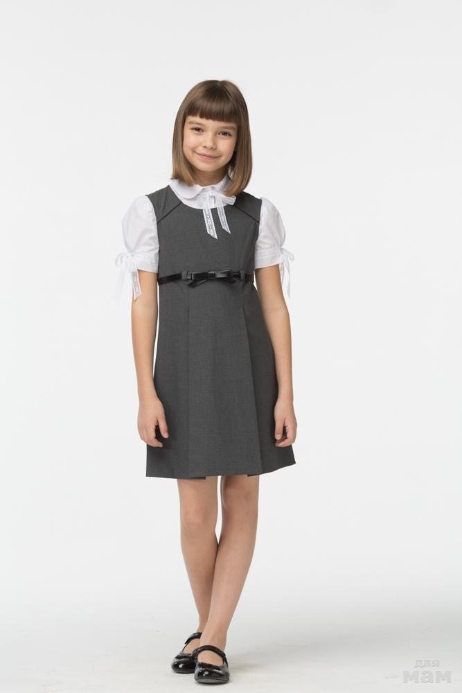 3. Сарафаны Смена (15с513) р. 134/68, серый. Цена 700 руб. Сарафан из смесовой вискозы с круглым вырезом, отрезной под грудью. Дополнен тонким черным поясом с бантиком и шлевками, от которых на юбке заложены две симметричные складки. Застегивается на потайную молнию в боковом шве.