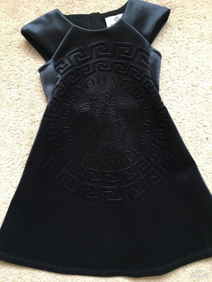 Это просто шедевр от Версаче !! На рост 100-108 см, нам уже малое , на стройного ребёнка, сзади молния, спереди выбитый лого Версаче в виде медузы, на ощупь похож на плотный бархат, держит форму , не видела такое платье больше нигде !! Ни в магазинах ни в интернет магазинах , коллекция зимы 16/17 г, в идеале, одето считанные разы, не стирала, не сдавала в химчистку, потому что нет необходимости, без следов носки вообще!!! брала в закупке , стоило дорого, отдам за 8000. Замеры по запросу реальному покупателю . При разном освещении меняет оттенки от чёрного к чернильному и к коричнево чёрному , смотрится оочень дорого , естественно оригинал