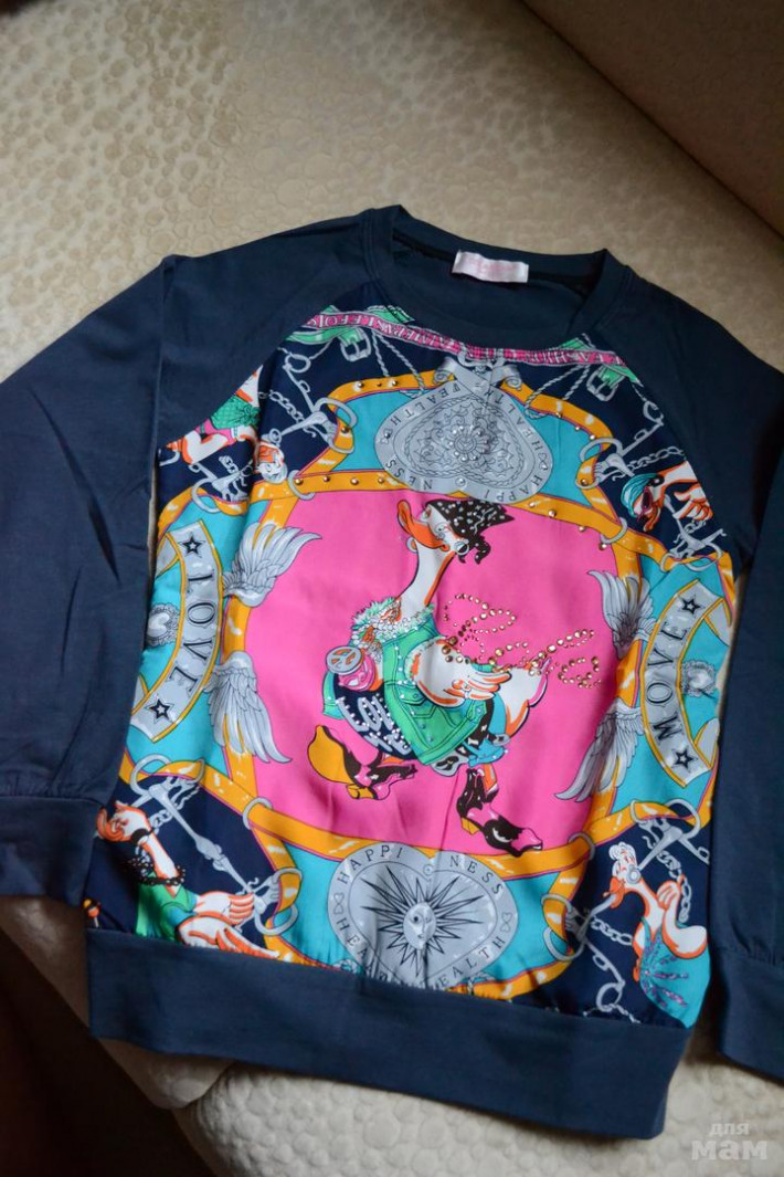 лонгслив р.130, но на мой взгляд маломерит чуть-чуть или на худышку, в наличии 2шт., НОВЫЕ, но без бирок, отрезала поторопилась, моим помпушкам на рост 125 не подошло). С джинсами очень красиво смотрится.