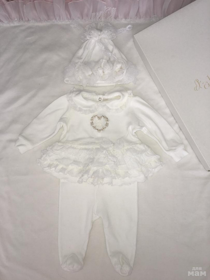 Очаровательный костюмчик Aletta для новорождённой принцессы, к костюмчику есть шапочка Aletta, все одето единожды на выписку. Цена костюмчика 2700, цена шапочки 800 руб. Все вещи в отличном состоянии, после одного ребёнка.