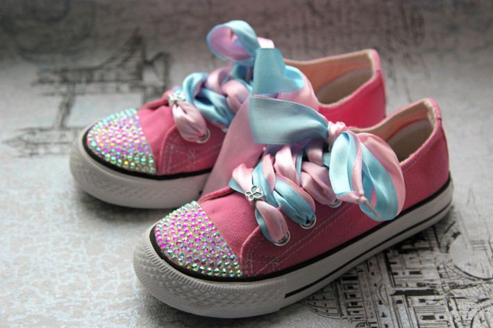 В наличии Конверсы реплики 29р. Розовые низкие. Стразы с переливом. Двойные шёлковые шнурки. Стелька около 18,7см. 2200 руб