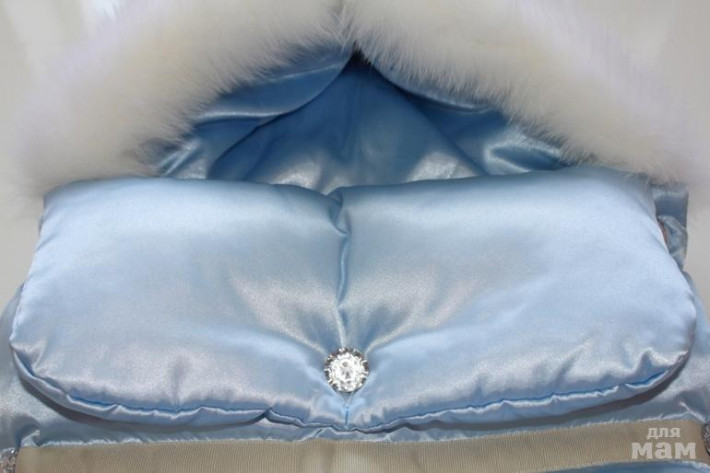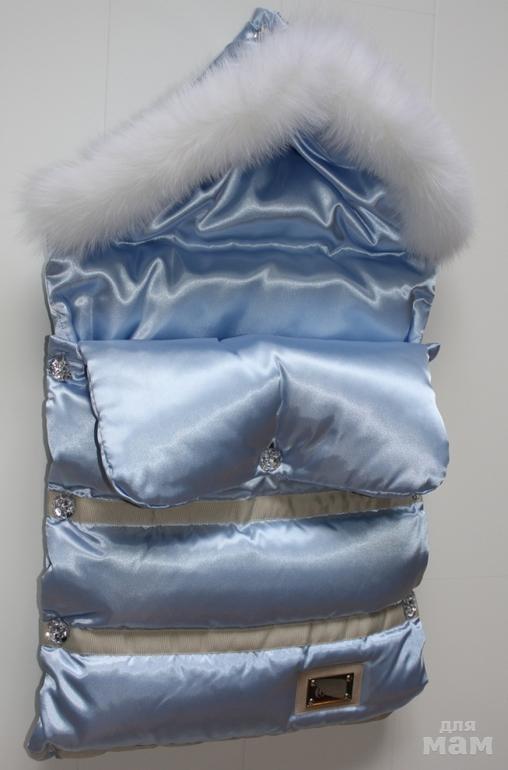 Шикарный конверт на выписку итальянской фирмы Canzitex. Наполнитель - 100% утиный пух, очень теплый, рассчитан на наши морозы, удобно гулять в коляске. Белый мех лисы отстегивается при необходимости. Красивущие пуговицы, переливаются на свету. Незамеченными в нем точно не останетесь.
