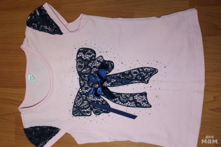 Футболка с бантом, р-р 11, в хорошем состоянии,есть небольшое пятнышко - 300 руб.