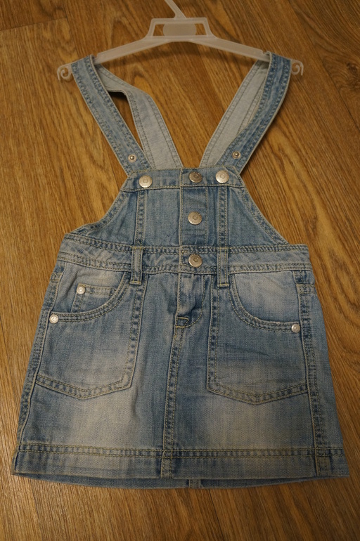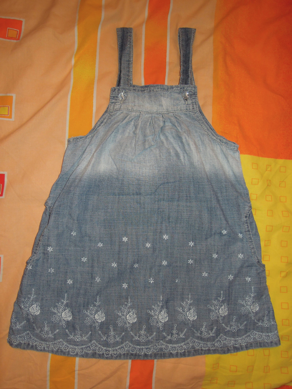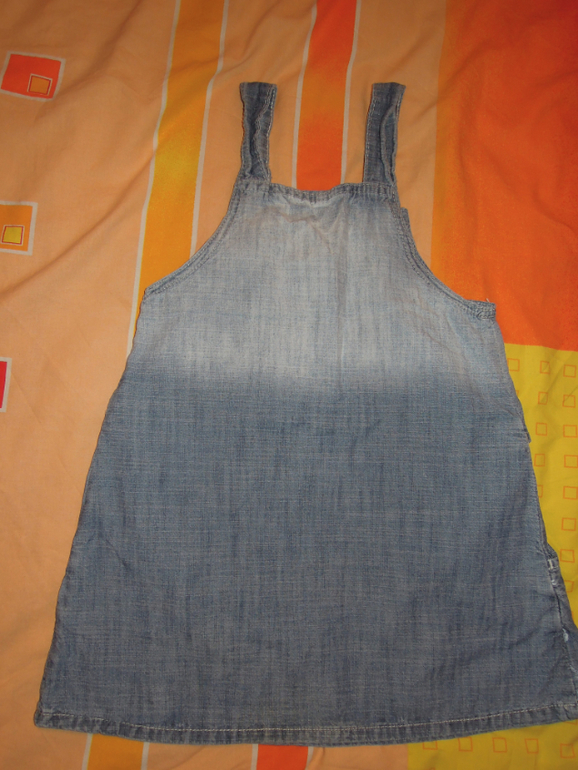 3. Джинсовый сарафан р-р. 110 ( на мой взгляд большемерит). Явно на пухляшек. Длина 58,5 см, ПОГ-31 см.Цена 350 р-р.