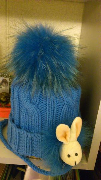 Шапка унисекс,100% меринос, однослойная .Зайка белый, ушки св.розовые , фото бликует! р.50, Почта 200руб.