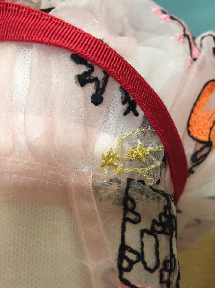 в отличном состоянии, только в одном месте по шву на поясе немного отошла ткань, в ателье за минуту думаю подошьют, но и так практически не заметно