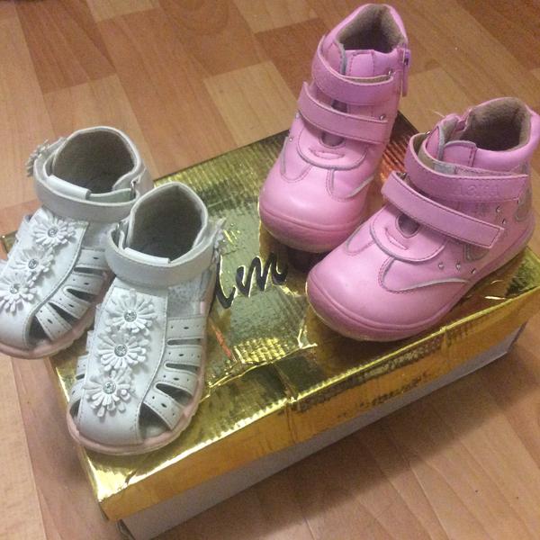 Эти босоножки 20 размер и 22 размер ботинки, носили в одном возрасте. 500 р каждые!