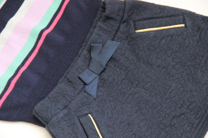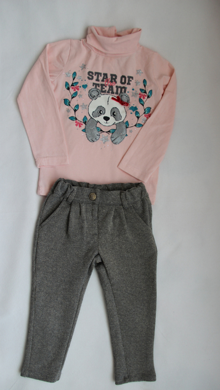 Бомбер 128 размер, но маломерит, идет на 116-122, на флисе. Штаны 116 размер, есть небольшой нюанс на коленке.