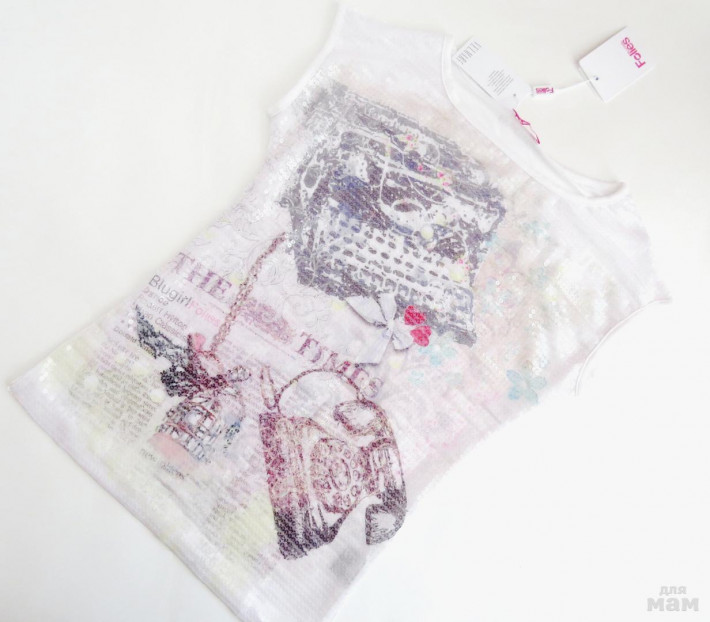Спинка - вискоза с эластаном, впереди - полиэстер, расшитый пайетками
