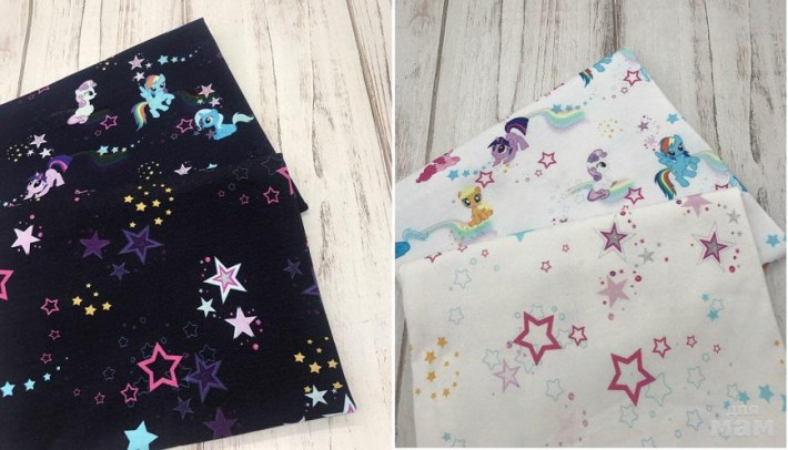 звездочки на темно-темно-синем, звездочки на белом, пони на белом, пони на темно-синем.