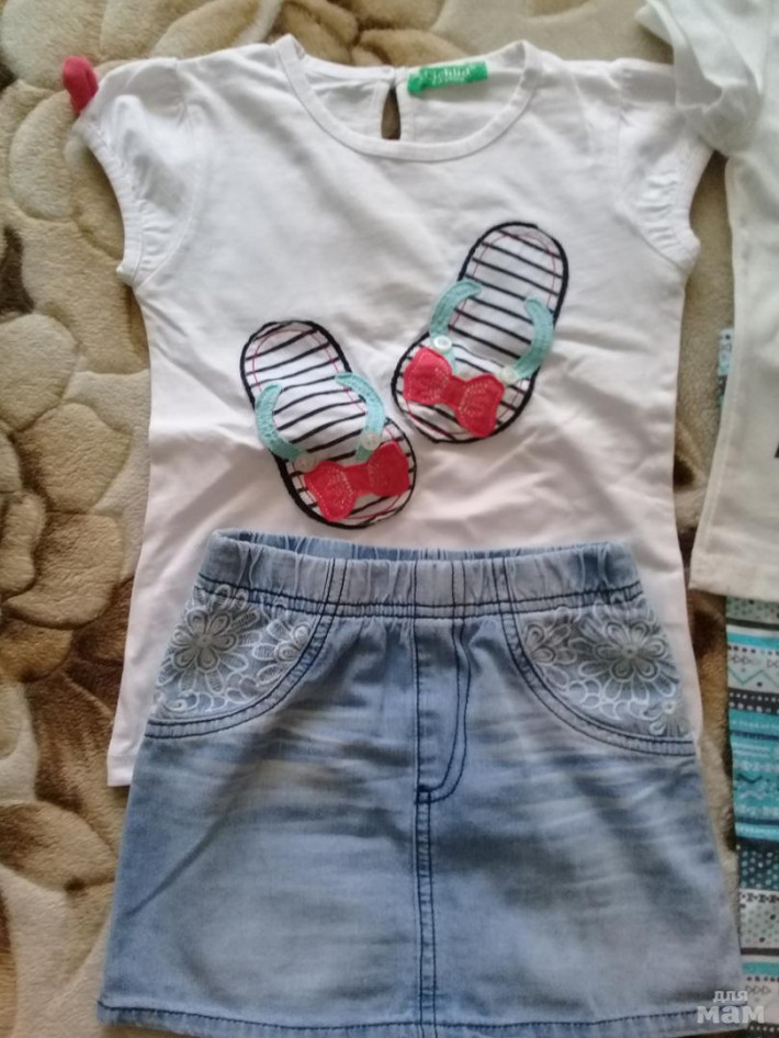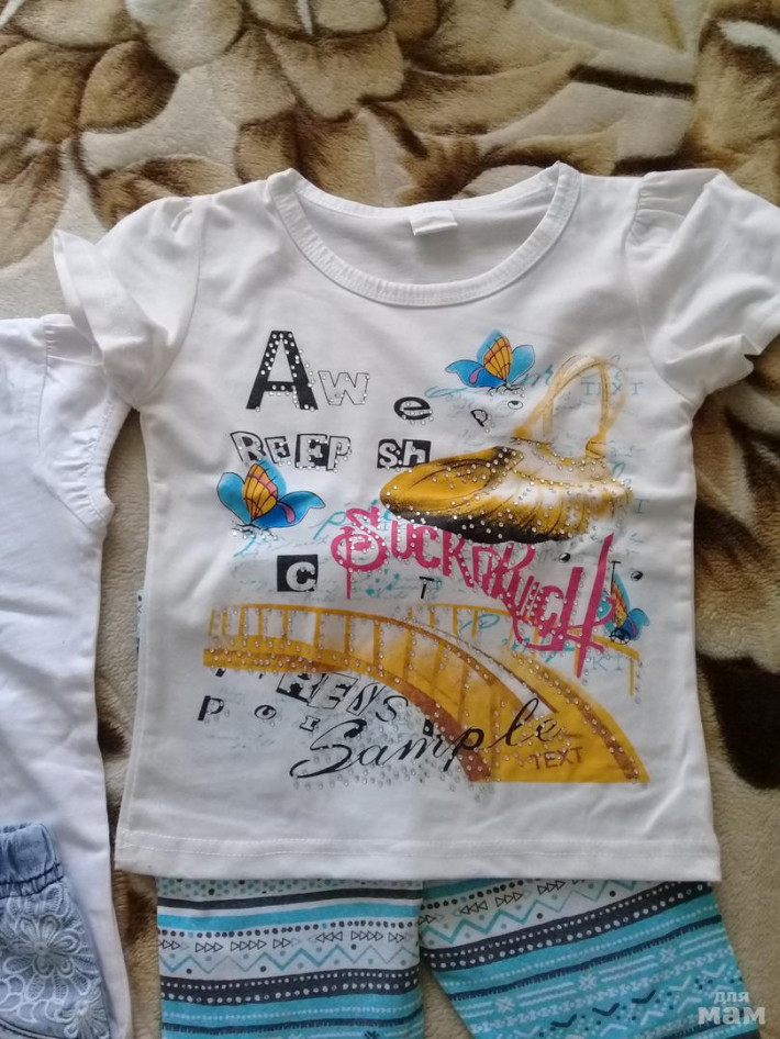майка со шлепками 200, стразики-150, юбка 200, лосинки 100.