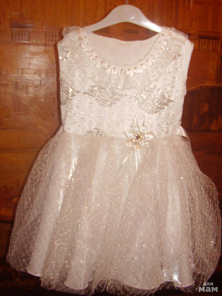 Шикарное, пышное, сияющее/сверкающее платье для принцессы. В живую гораздо красивее смотрится, увидите-влюбитесь)). Состояние нового, надевали один раз на фотосессию. Подойдет на размер 86-95 (1-4 года)