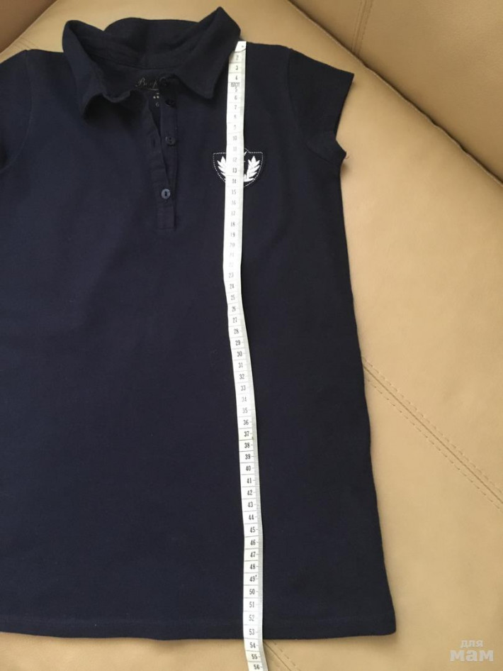 Темно синее, маркировка 6, замечательно смотрится с длинными гольфами, платье подразумевается носить коротким, состояние хорошее