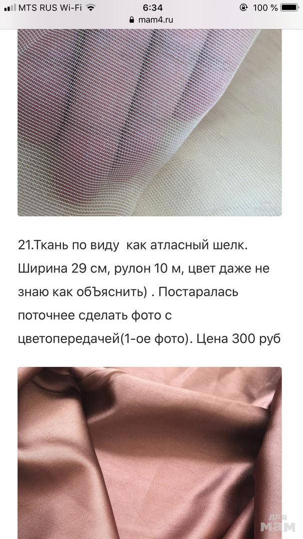 7. Однотонная бежевая ткань (по виду похожа на атласный шелк). Ширина 290 см,рулон 21 м. Цена 300 руб STOP!