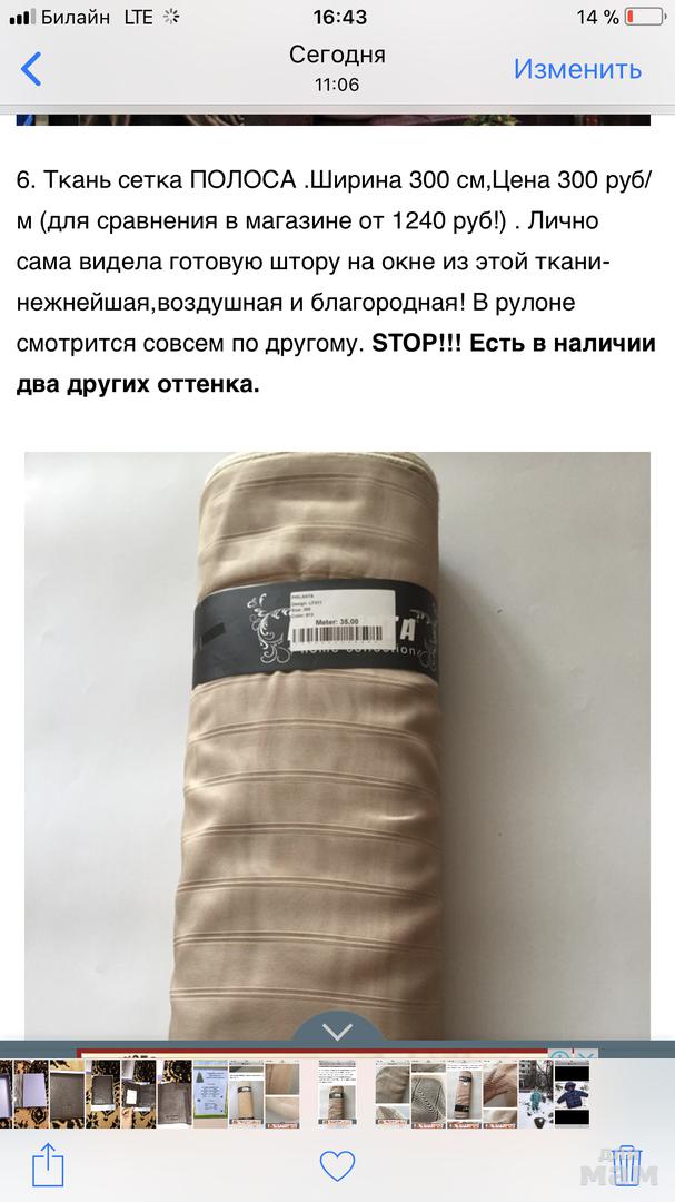 6. Ткань сетка ПОЛОСА .Ширина 300 см,Цена 400 руб/м (для сравнения в магазине от 1240 руб!) . Лично сама видела готовую штору на окне из этой ткани-нежнейшая,воздушная и благородная! В рулоне смотрится совсем по другому. STOP!!! Есть в наличии два других оттенка.