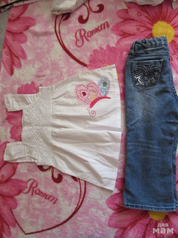 Топ в отличном состоянии, на джинсах пара еле заметных пятнышек.