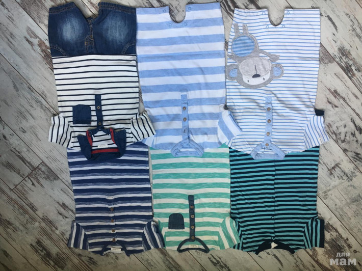-2-ое фото: Песочники любой 300руб тот что с имитацией джинсовых шорт и воротника 500руб Первый слева вверху фирма HM 12 мес. остальные все Next, два в верхнем ряду идут на 9 месяцев, но next всегда большемерит, можно носить дольше. Второй ряд все 12 мес