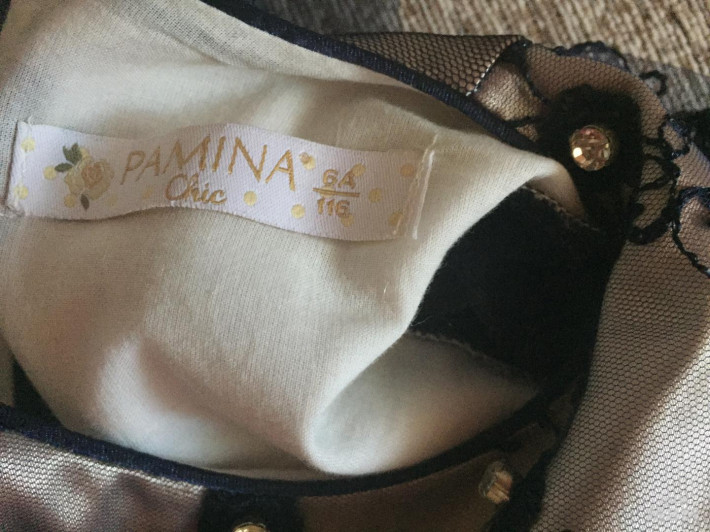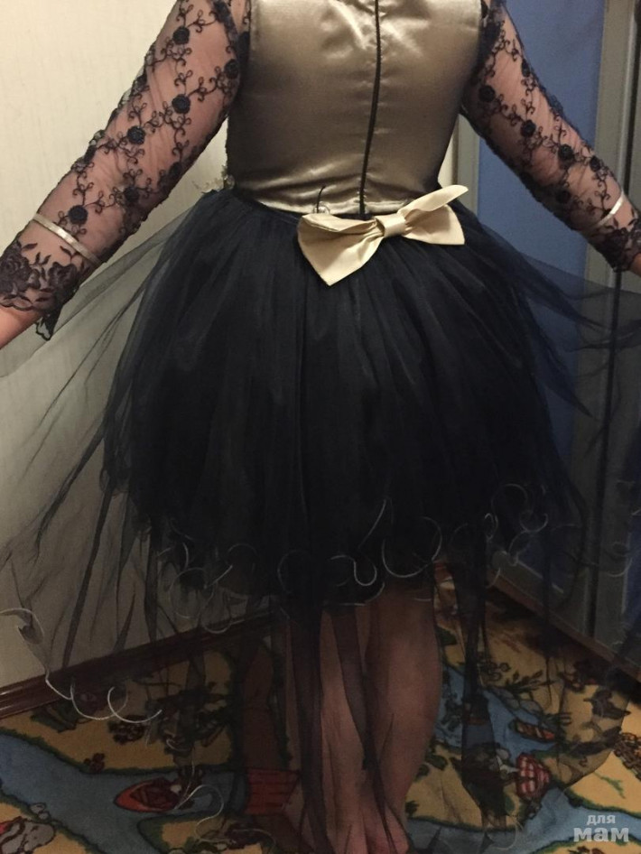 Платье Памина маркировка 116, но мы надевали и при росте 122, на фото рост 128 сидит плотно, шлейф отстёгивается, очень пышное, надето на выпускной в саду и на новогодний утренник. 1000₽.