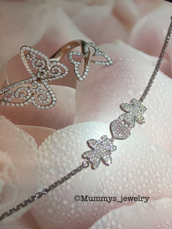 Комбинация гладких малышей и в инкрустации камнями невероятно нежное и стильное украшение ! " Мама может,мама может все что угодно"...и даже быть дизайнером ювелирных украшений. Мама с большой буквы-это творческая личность.
