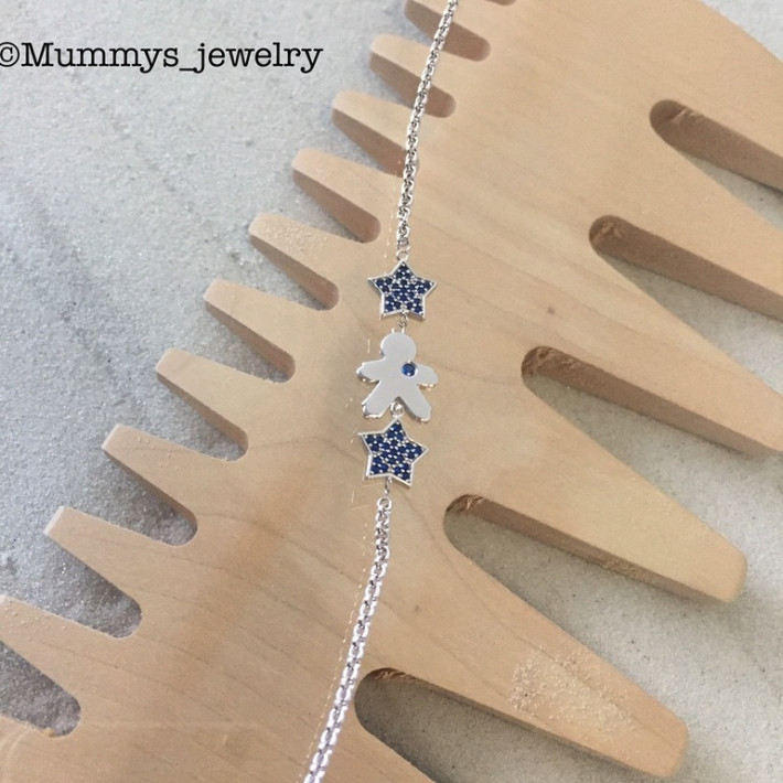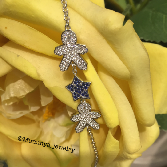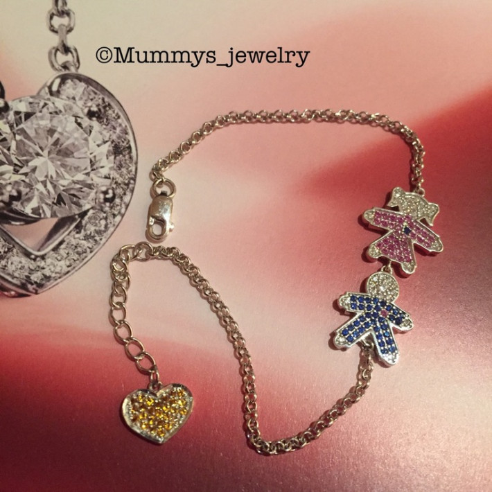 Браслет с двумя сыновьями,размер фигурки 1.6 см и звездочкой в полной инкрустации фианитами бриллиантовой огранки . 118 сверкающих камней! Много это или мало -решать Вам. Если учитывать,что каждый камень мастер вручную поместил в маленькое отверстие,вырезанное в самих фигурках( закрепка Паве).