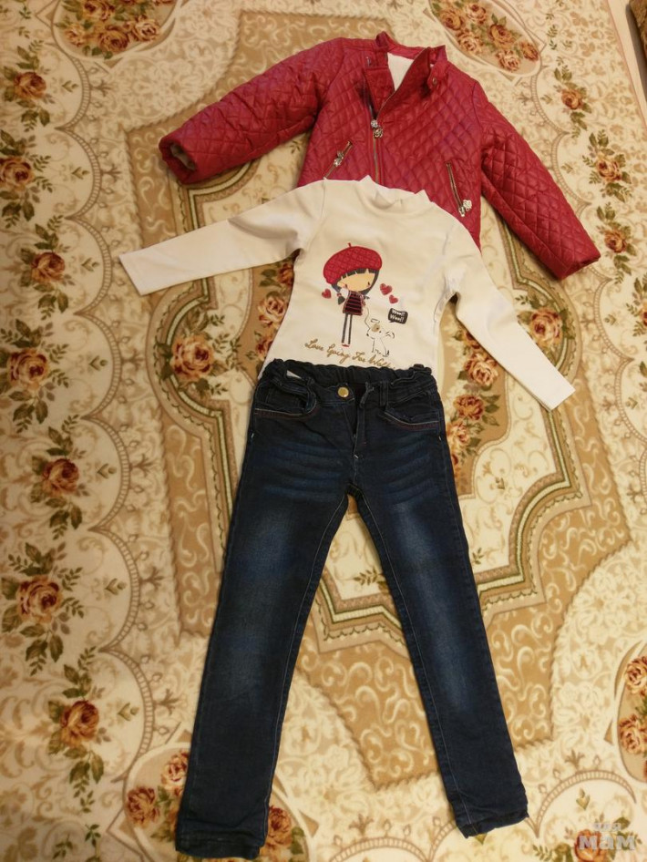 Очень стильный комплект для девочки, размер 5л. Турция, фирма bebus. Ветровка +Лонг+ джинсы на хб подкладке