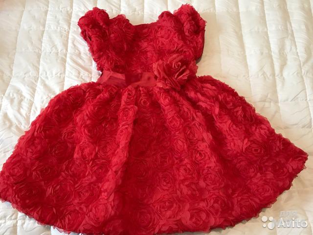Шикарное нарядное красное платье р указан 110, реально на 100-108 см в зависимости от комплекции.Подкладка хлопок. Длина общая 60 см, длина от талии 35 см, объём груди 29 см, талия регулируется лентой, цветок съемный. смотрится бесподобно. В состоянии нового- одевали раза 3 на праздники.