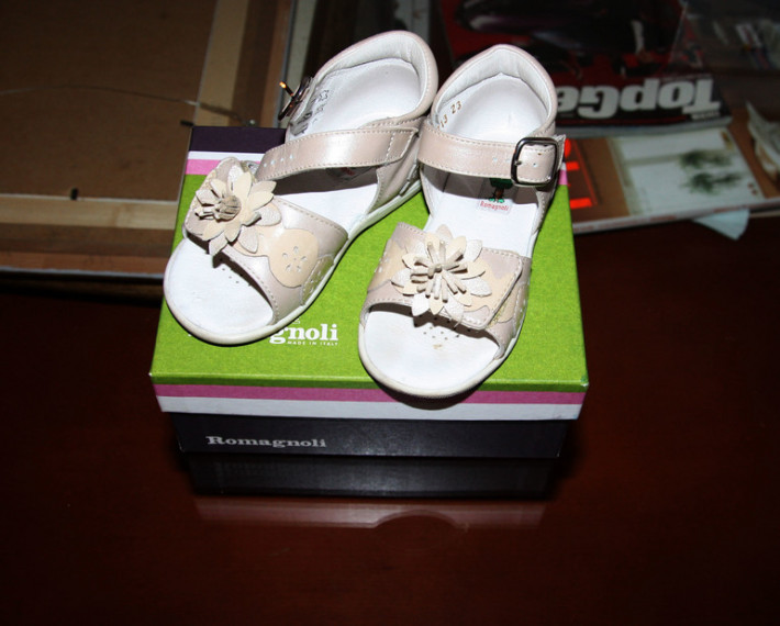 3. К комплекту босоножки Romagnoli. Цвет кофе с молоком, немного перламутровые. Очень мягкая кожа. На пяточках есть не большие потертости (см. фото) Размер 23. По стельке 14.8см. Цена 1800р