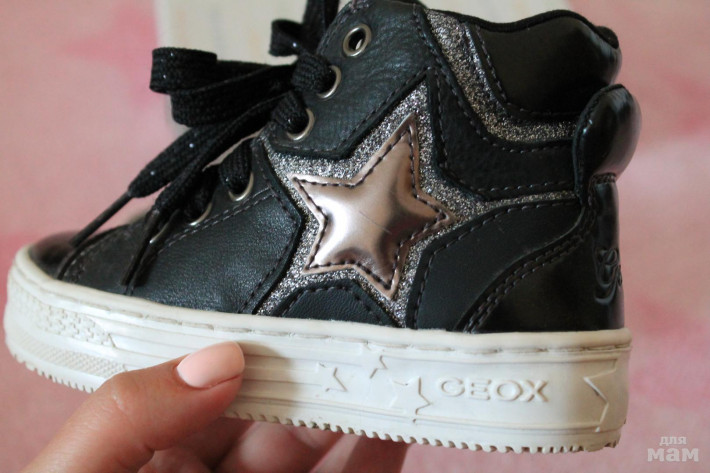 Классные кроссовочки для девочки на осень из кожи р. 25 (15,5 см), дышащая толстая подошва, твердый задник. Замок для легкого одевания, красивые звезды обрамленные глиттером. Одевали один раз в самолет и один раз в тц. Нюансов нет.