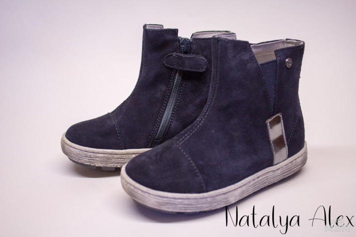 Кожа синего цвета (очень мягкая), внутри кожа. Невысокие. Смотрятся на ножке очень стильно и гармонично!