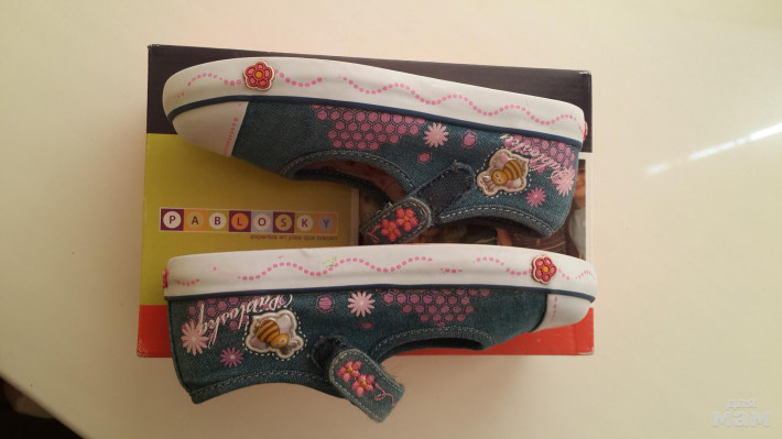 Отличные кеды-туфли, джинсовые мягкие, в отличном состоянии, носили только в сад на стенку . Бу 1 мес. Из нюансов стерлись розовые точки рисунок на ободке подошвы впереди. Мысы резина, пальчики ребенка отлично защищены. 17.5 стелька