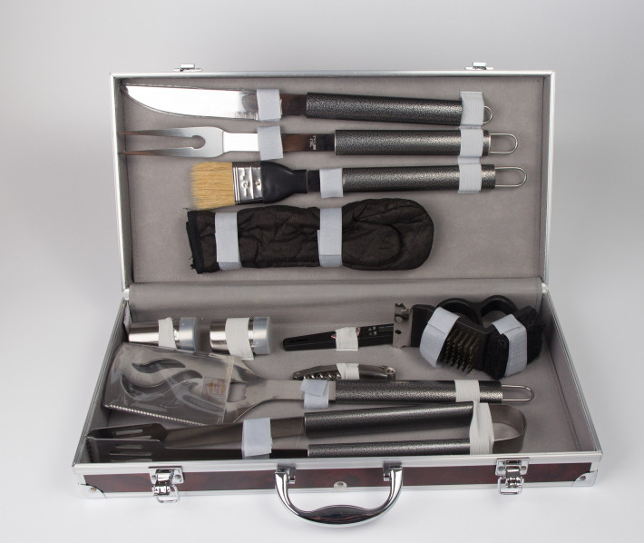 Отличный подарок любителю отдыха на свежем воздухе. Очень качественный набор, все приборы выполнены из нержавеющей стали. Ручки на приборах так же сделаны из стали и приятно сидят в руке. Отличительной чертой набора, является качество предметов, позволяющее использовать их много и много раз, в отличии от китайских наборов.