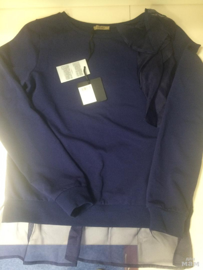 Пристрою свитшот Liu jo. Оригинал. Цвет синий. Очень красивый и оригинальный, ткань не плотная. Размер 42ит на 44 росс. Органза снизу только сзади.