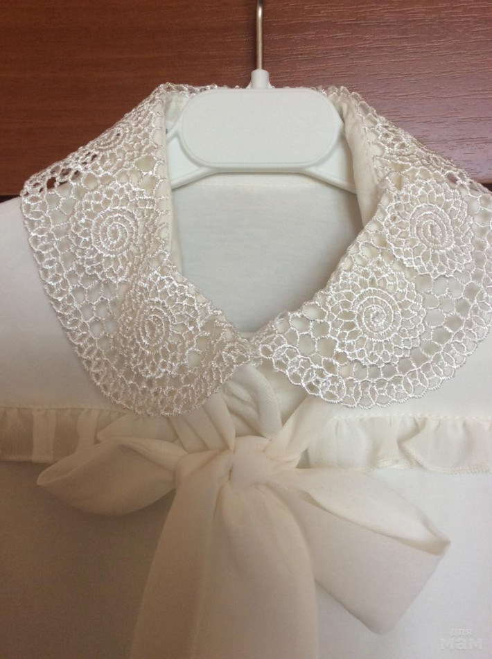 Блузка бореЛЛИ р8, НОВАЯ, белая, брошь в виде розы, средняя полнота- 1300р;