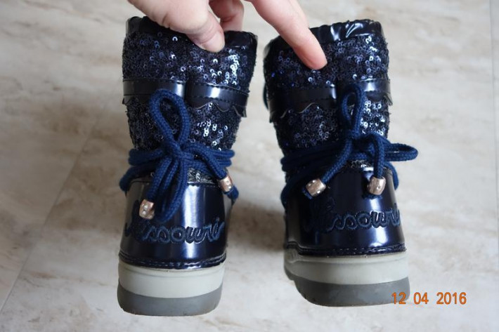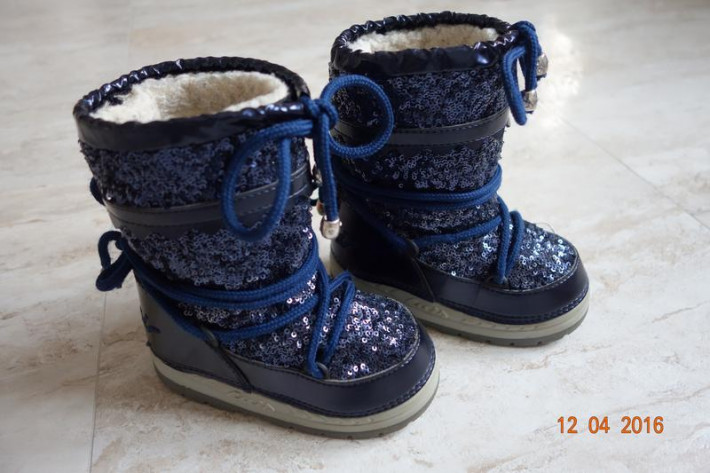 Оригинал, нормальное состояние. Есть царапинки, потертости на внутренней стороне валеночка. Пайетки все на месте, шнурочки цельные. маркировка 27/28, но маломерят. носили на ножку 25/26 размера, примерно +/-16см.