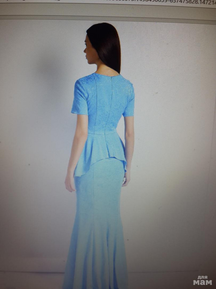 Платье прилегающего силуэта, расширенное к низу, по линии талии - баска. Спереди на груди эффектный вырез. Сзади застежка на молнию. Очень красивое платье. Немного тянется. Одела 1 раз на свадьбу. Возможен торг. Покупала за 5500 руб. Очень классное платье и хорошо сидит, ткань приятная, не колется.