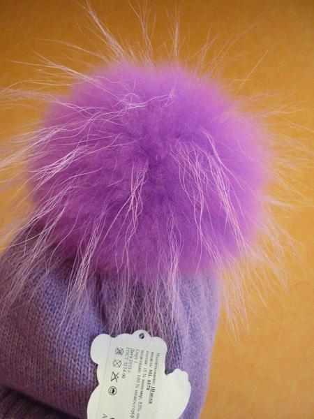 Очень мягкая пряжа, с кашемиром. Помпон большой - енот натуральный.