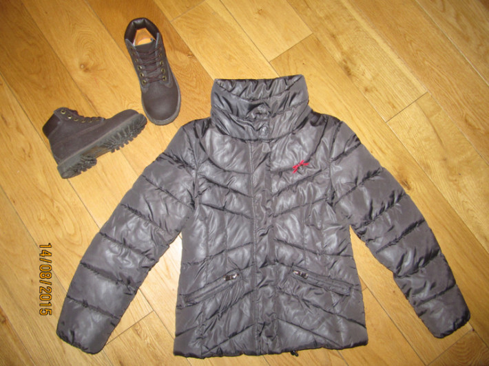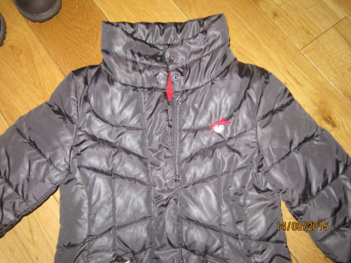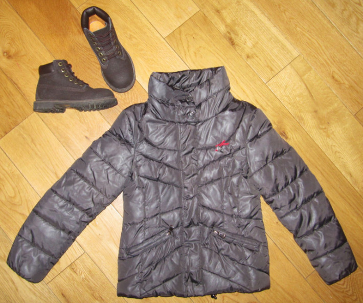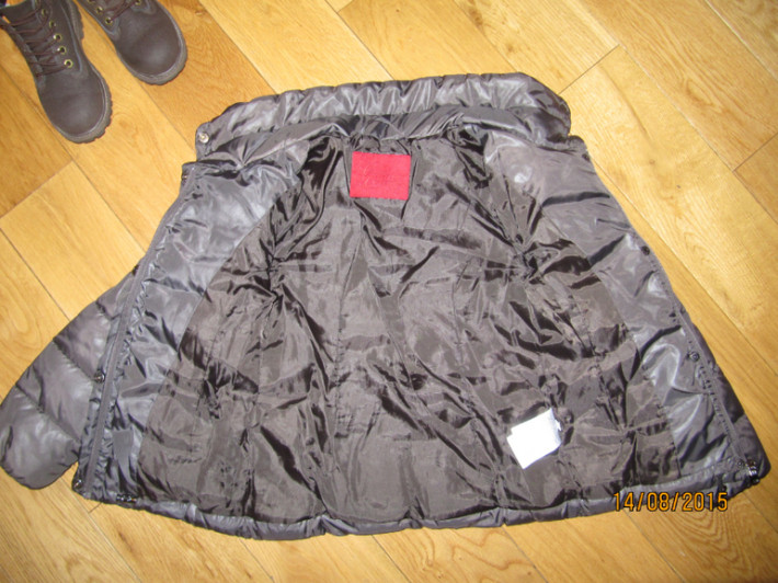 Превосходная куртка. Ворот супер. Курточка мягкая, гладенькая, лёгенькая, тёпленькая, на раннюю весну, позднюю осень. 6 размер на рост 110 см.-5 лет, сидела идеально, в рукавах запас был до роста 116, но носить уже можно. К этому цвету любую шапку и штаны можно одеть. В реале цвет как на каталожном фото, на моих вспышка делает её блестящей. Очень вкусный и красивый цвет, шоколадный.