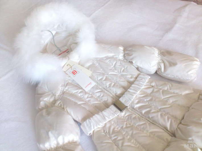 Белоснежное пальтишко или удлиненная куртка для принцессы Laura Biagiotti, размер 3А (если пальтишко, то раньше). Новое, с этикеткой. Наполнение - пух (еврозима), опушка - лиса. + 300 рублей почта