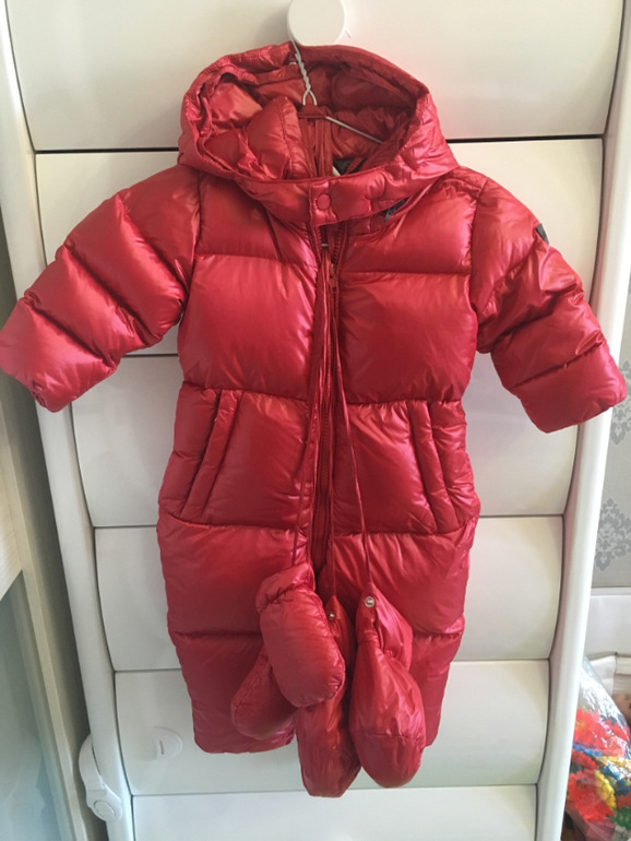 Слитник, варежки + пинетки. Размер 12 месяцев. Мы носили в 74см .Состояние идеальное . Единственно променяна родная молния, сломалась почти сразу.