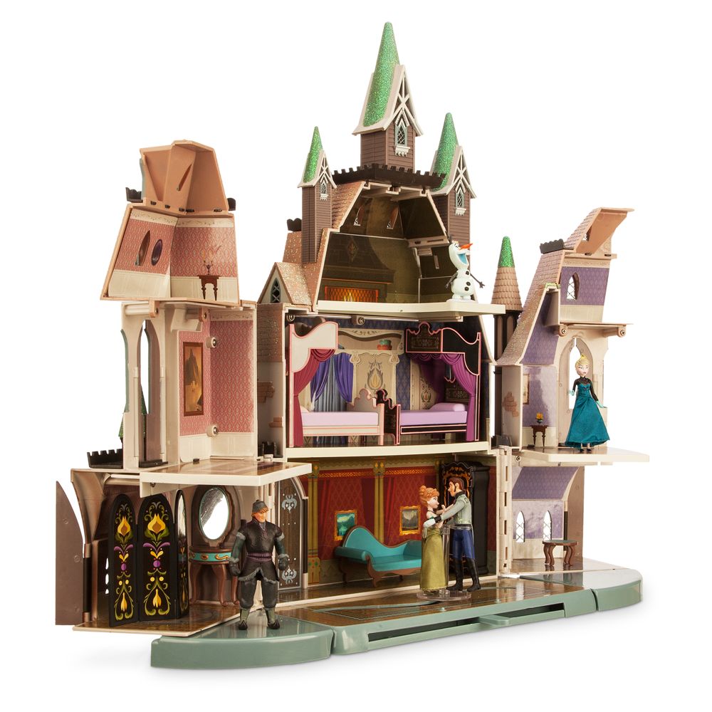 Замороженный Замок Эрендел - 7500 руб. в наличии Замок 51 см. в высоту Анна, Эльза, Ганс, Кристофф, Олаф и цифры (пластик до 10 см.) Мебельные аксессуары включают в себя две кровати, диван, шкаф, туалетный столик со стулом и экраном Показатели на платформе и рычаг слайд, чтобы увидеть их танец Замок открывается, чтобы показать внутренние Номера оснащены экранное искусство интерьера Шпили замка с зелеными блестками Мерцающие плитки крыш ********************************************************