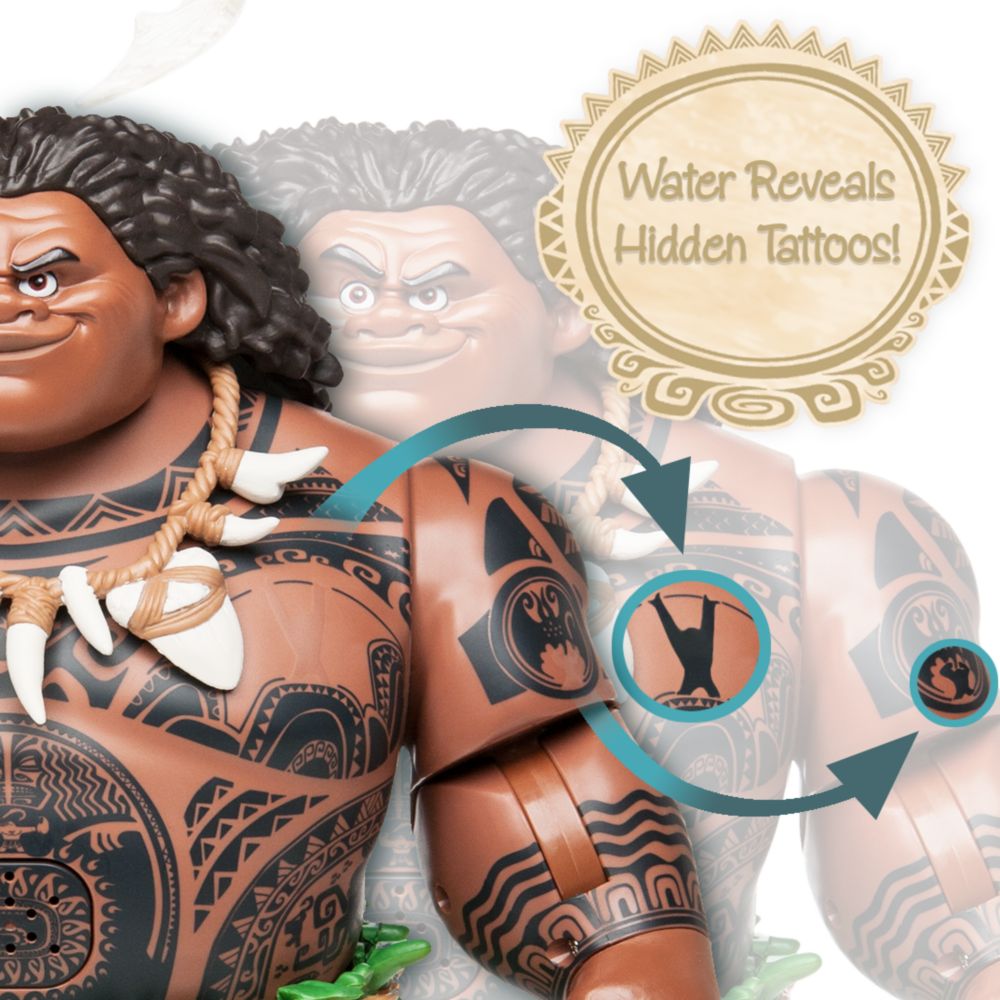 Набор включает в себя подвижной водной основе, три звезды проектор слайдов, лодки, Моана, Мауи, ястреб, Tamatoa, два kakamora, и многое другое