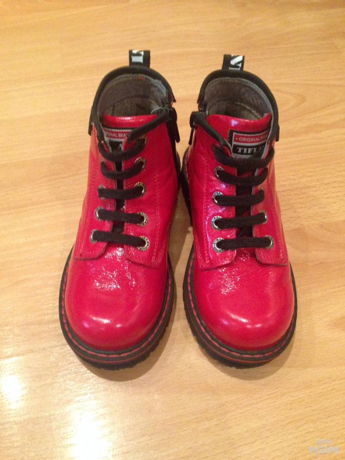 Демисезонные ботиночки Tiflani красный лак на флисе. Размер 30 (по стельке 19,5 см). Без следов носки.