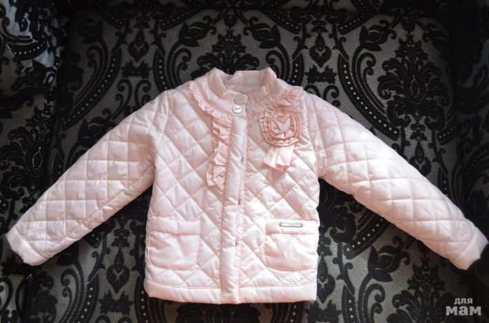 Продам новуй курточку для Вашей модницы. Мы её ни разу не одели, т.к. промахнулись с размером.Красивая курточка нежно-розового цвета с низким воротом и оборкой у ворота. Украшена декоративным цветком.Утеплена тоненьким синтепоном, застегивается на кнопки. На куртке два накладных кармана. Р-р на бирке 104.