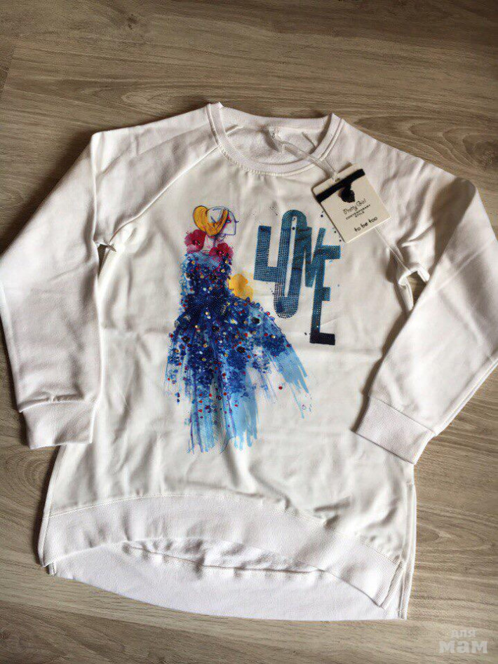 16.- свободный свитшот, на рост 140-150 см, рисунок весь в стразах и камнях, 1700 руб-продано