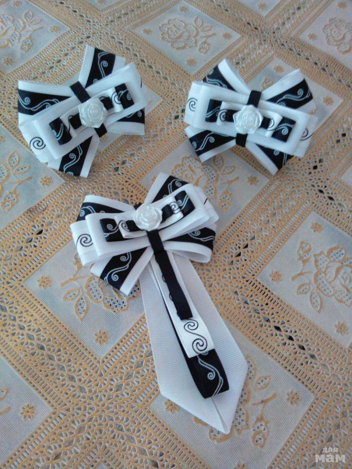 Нарядный комплект под чёрную форму. Галстук-брошь и резиночки