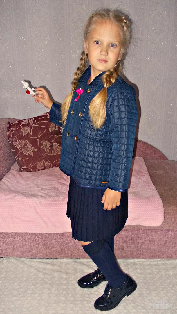 Новая стёганая куртка на тонком синтепоне, на теплую осень/весну. Размер по маркировке 122, в реальности можно и раньше, но подойдёт только пухленькой девочке, т.к.широкая в талии.Цвет темно синий.