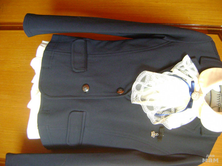 Классический пиджак темно-синего цвета Ostin маркировка 122, идет в размер на худенькую девочку-700руб, юбка по цвету и качеству ткани идеально подходит под пиджак (Smail Dragon) р.122, на кокетке, сзади молния, есть утяжки в поясе, очень качественно сшита.-1200руб. Все вещи новые с этикетками, покупались в дни распродаж. нужны замеры пишите.