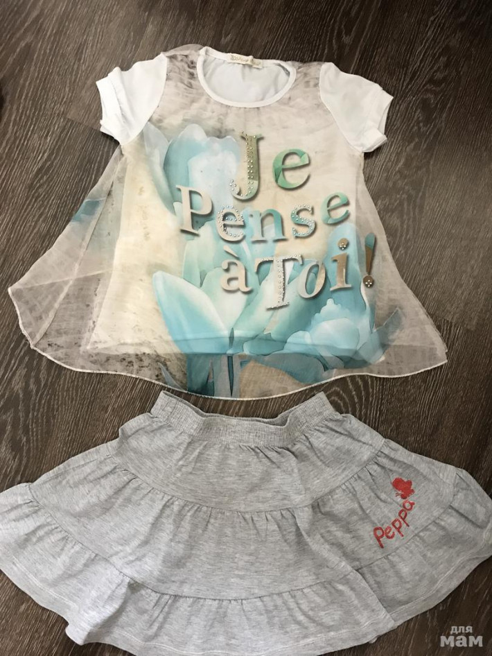 Футболка кавалли 5-6 - 500, ношена активно, но пятен и прочего нет. Юбка продана